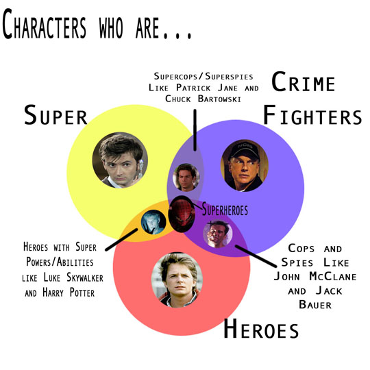 This graphic should help illustrate the point I was trying to make in yesterday’s essay, I Am Number Four and Other Non-Superhero Super Heroes. Find a larger version by clicking on the picture or by clicking here. Leave your thoughts in the comments!