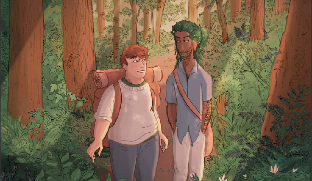 And speaking of the artwork- wow! Conner has an impressive skill at drawing natural backgrounds, from dense forests to billowing waterfalls. Chepi and Janek are expressive and emotive all throughout, though the character design for Chepi and the other nymphs is particularly interesting. Conner gives the nymphs a blue-gray tint that reminds me of how Vishnu is often depicted in Hindu artwork. Something else Finding Home‘s artwork does well is how it depicts light sources. Campfires are warm and flickering and sharp rays of sunlight penetrate the layers of trees that Chepi and Janek hike through. All in all, the artwork in this comic is a treat for the eyes.